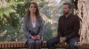 Amara and Chuck reunite, talking about Chuck’s endgame. He says he needs her help; he can’t reset without her, but she vehemently declines. He then realizes the Winchesters are involved, but she isn’t on their side or Chuck’s side. She just wants to defend this world. As they walk, she reminisces about his creations, accusing him of wanting to destroy everything because of the Winchesters. He disagrees, instead citing he can’t stand being reminded of his failures. Amara transports them to Heaven, where Chuck can meet some of the angels, who are in absolute awe of him. She tells him she wanted him to feel their love and devotion. Chuck doesn’t buy it. She calls out his selfishness, saying that makes him the villain. Their final stop is the bunker. However, when Chuck tries to teleport himself out, he can’t.