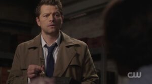 Dean and Jack get ready to head to Santa Fe, sans Sam who still doesn’t agree with Dean’s approach. Dean, however, thinks it’s what they have to do. Sam brings up Jack being family, to which Dean responds that he isn’t (OUCH, Dean). Jack walks in and says he’s ready, and he and Dean leave. Cas walks in shortly after, saying he would do the same thing as Sam.