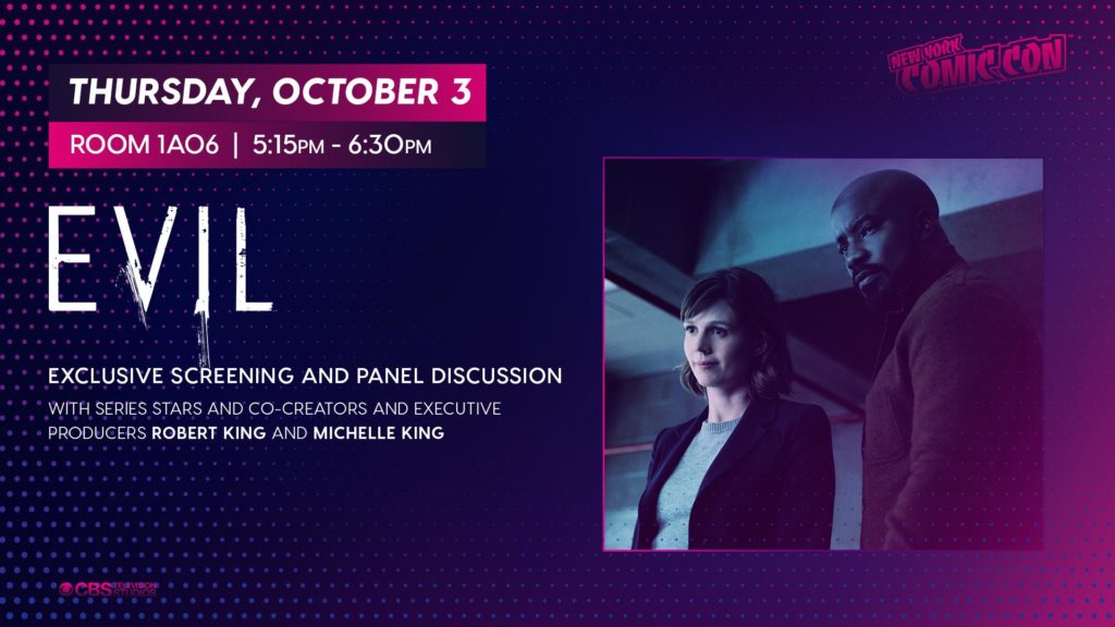 Starting on Thursday, October 3, there will be an exclusive screening of the new fall drama, Evil, as well as a panel discussion with the series’ stars, co-creators, and executive producers. This panel will be held in Room 1A06 from 5:15 p.m.-6:30 p.m.