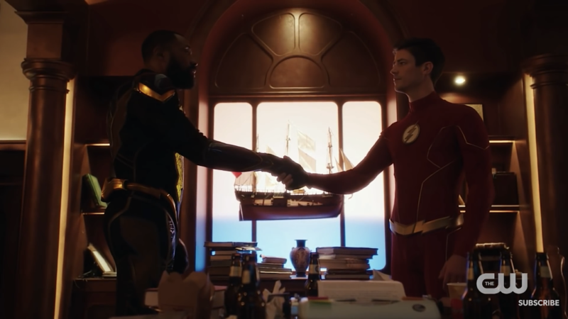 In the trailer, Barry is consoling Iris, telling him it’s time for him to die, seeing that the only way to save everyone is for him to die. Iris tells Barry she doesn’t want to say goodbye. In a voiceover, Legend Sara Lance says, “There are things we have to accept no matter how much it hurts.” Barry is also recruiting Jefferson Pierce, aka Black Lightning, for help in the incoming Crisis. In a surprising news feed, Lois Lane is kneeling beside Superman, a headline appearing on the bottom of the screen with, “Lex Luthor Kills Man of Steel…” Oliver, dressed in his Arrow gear, tells Mia to tell her mother that he loves her.