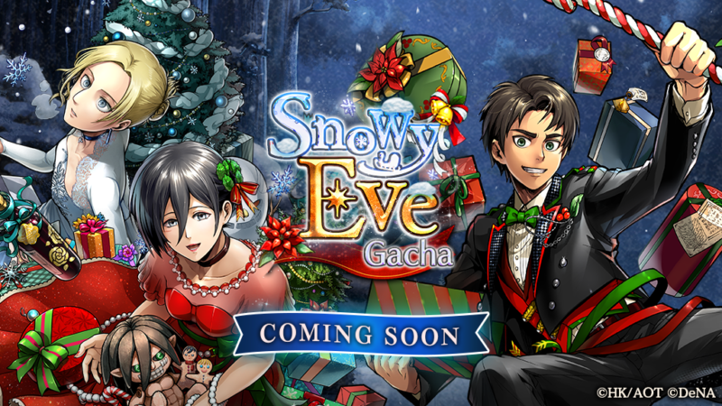 This holiday season, players will have the chance to see characters such as Eren Jaeger, Armin Arlelt, and Annie Leonhart, from Attack on Titan join in the festive season. It begins on December 10 and goes until December 24, 11:59 p.m. PT.