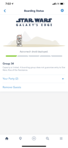 When you arrive at the park, make sure your app is logged in to your account. I double checked mine by trying to get a fast pass about 20 minutes before they opened up the app to get boarding groups. Even though I used the app the day before to connect with my friends, it told me that my password was incorrect. I had to reset my password, and those few minutes could have pushed me to a back-up boarding group number and the possibility of not riding.