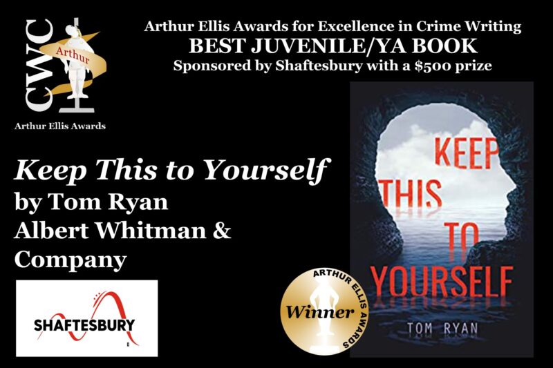 The thrilling YA novel Keep This To Yourself by Tom Ryan was announced the winner of the 2020 Arthur Ellis Award from Crime Writers of Canada, sponsored by Shaftesbury. Ryan won the AEA Award for Best Juvenile/YA Book, as well as a $500 prize on the novel’s birthday, May 21. The Arthur Ellis Awards were established in 1984 for current Canadian residents and Canadian citizens living abroad. They are awarded annually for a variety of crime writing categories.