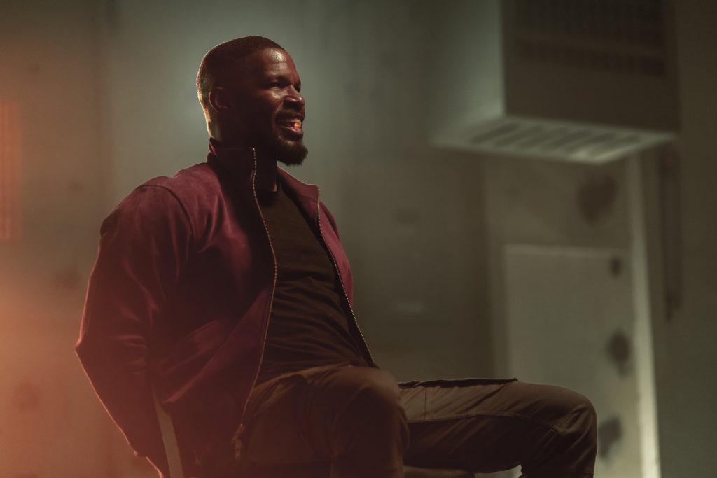 The movie follows a local New Orleans police officer (Joseph Gordon-Levitt) who, with the help of a teenage dealer (Dominique Fishback) and a former soldier searching for his daughter (Jamie Foxx) try to track down and put an end to the group who created a very unique pill. What is special about this pill is if you take it, it unlocks superpowers that are unique to you. Until you activate it and swallow it, you have no idea what will happen to you. Some people have gotten super strength or invisibility, to name a few. Others, it has shown a more deadly reaction. Crime in New Orleans starts to escalate all because of this magic pill, so it is time to fight power with power. You can see some of the first photos from the movie below!