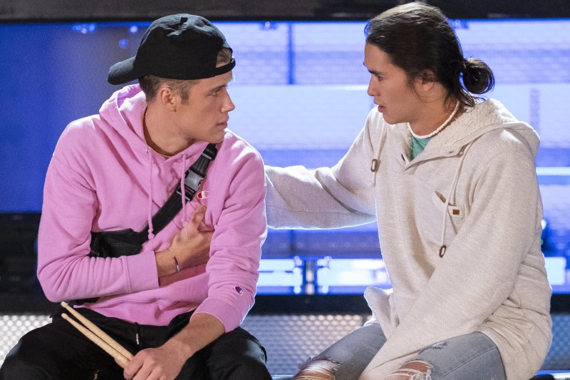 One of the major storylines that carries throughout follow Alex (Owen Patrick Joyner), the band’s drummer, who is gay. His band mates are clearly completely accepting of this, but a flashback shows viewers that Alex’s parents had been decidedly less accepting of his sexuality. However, the show doesn’t focus on that issue. They simply acknowledge it as part of the reality of many queer kids in the ‘90s before moving on to introduce Willie (Booboo Stewart) as Alex’s crush, pushing the story in a much more sweet and positive direction.