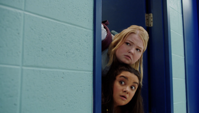 The local Gateway to God youth group, led by Christine (Geri Hall), needs to get their recruitment numbers up and go to Lilly’s house to “kidnap” Astrid (with her mother’s permission). To add to the utterly normal church group, they put a pillow over her head and took her to the church. When the pillowcase comes off, she sees that she is not alone. Sparrow (Spencer Macpherson) is “captive” there as well. Let’s see, they have taken her from her friend’s house, put a pillowcase over her head, what’s next? Oh, yeah. Time to take your phones away while they wait to be taken to another room with the group away from each other.