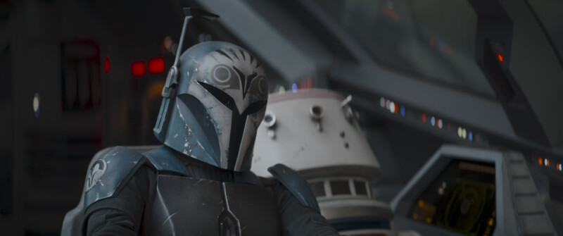Din takes Bo-Katan to the hidden covert, no one will find them there. Paz Viszla stops them, reminding Din he’s an apostate and not welcome, but he assures him that he’s bathed in the waters and he’s redeemed. And he brought proof. The container is brought to the Armorer who confirms that the waters are indeed from the mines, and Din is redeemed. However, so is Bo-Katan, and she’s welcomed into their covert so long as she keeps her helmet on and follows the old Ways.