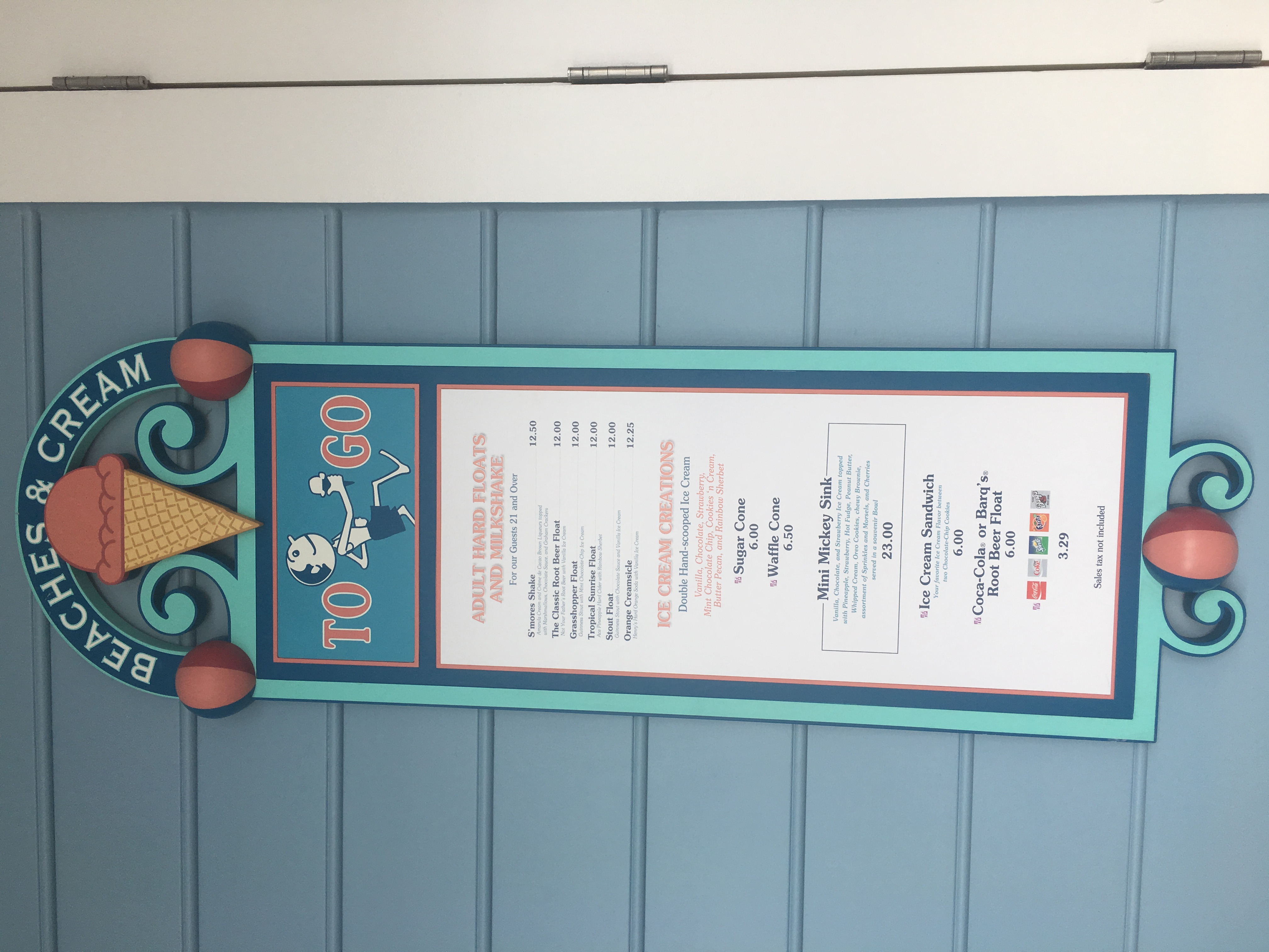 This place gave off the 50’s-60’s vibe. It had a jukebox when you walked in, music to pick at your table from that era and bar stools to sit at the counter to be up close in all the action. Although the seating was tight with only 3 booths and 6 tables, it was worth it! If you’re interested, book your reservation early, as this very popular restaurant is nearly impossible to get into. This location is conveniently located near one of the best pools on Walt Disney World property and if you’re visiting on a hot, steamy summer day, you can enjoy some to-go ice cream to cool you down. Not only that, but there is orange flashing lights for someone’s very special birthday and with anyone willing to tackle the huge ”Kitchen Sink.”
