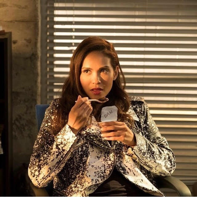 The hunt was back on for Maze and, thanks to information from Lucifer, she is able to find him once again, preparing to flee. She gets the fight she was originally hoping for, and the two end up handcuffed together, when an assassin disguised as room service begins shooting up the room. This scene proves that Maze truly is the ultimate badass: she throws one of her knives over her head (while ducked behind a table for cover!), hitting her target in the middle of the abdomen. We also saw Maze questioning her importance and, while talking to her bounty, she realizes her friendships in L.A., however unconventional they may be, mean a lot to her. By her own admission, she is “…exactly where I want to be.”