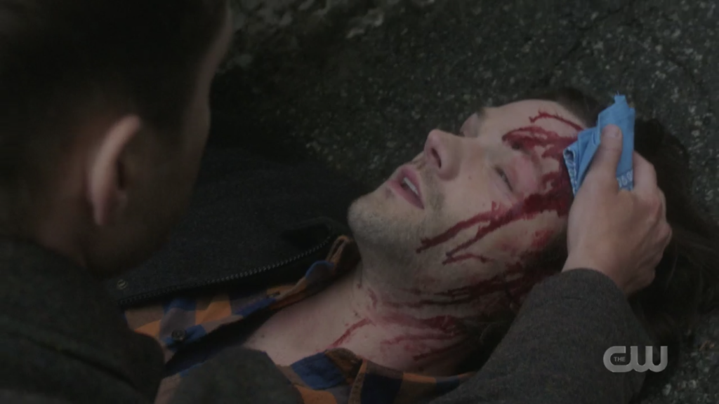 Dean is on the phone with Mary and Jack, fear clearly filling his voice. He explains Nick is gone and is trying to resurrect Lucifer. He tells them Sam is really badly hurt, but an ambulance will not be there for 20 minutes. With that, Mary and Jack are on their way. Things are definitely not looking good, and this scene makes you wonder if 20 minutes will be too long to save Sam’s life.