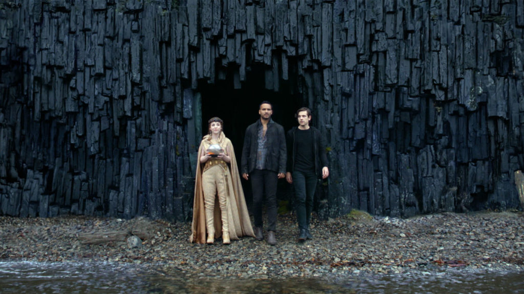 Back in the loft, the gang is trying to figure out their next steps now that Fogg has been arrested when they get a magic rabbit from Fen informing them that she has found a large reservoir of magic. Penny and Quentin head to Fillory while Margo, still exiled, stays behind. In Fillory, Fen (carrying a goldfish in a bowl) leads them to a secret garden (“the drowned garden” according to Martin Chatwin) inside a hidden chamber. The chamber is the anteroom to a giant protected lake of pure magic. But of course, there is a catch. The lake is protected by a curse and if you touch even a drop of the water you will be transformed into a “Fillorian Dying Fish.” Which sadly, is what happened to Josh. He is the fish in the bowl. Fen takes the Josh Fish back to Margo and explains that the type of fish he has been turned into must have constant eye contact trained on it or else it will die. (“Usually they get it from their fish mommies, but we will have to fill in.”) Margo has a special connection with the Josh Fish but chafes at being put on fish sitting duty right when they are about to attempt to save Eliot.