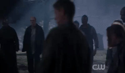 In the graveyard, the souls come crashing down on to the graves. Each time, a zombie emerges and shuffles towards the last of Team Free Will. Castiel draws his blade. Dean breaks off some iron bars for him and Sam. And they slowly draw nearer to one another as dozens of zombies push ever closer. Thereās an odd sense of finality about this moment — after all, it’s always been the Winchester brothers and their angel against the world. Isnāt that how it should be? In the last shot you see the zombies pounce, and the camera pulls away.