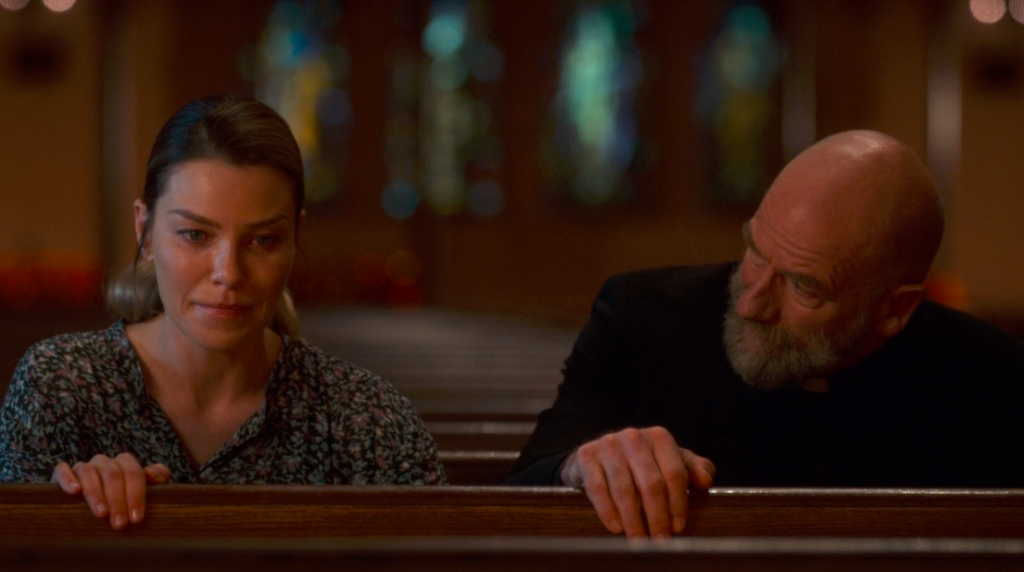 But later, we see Chloe enter a church. It’s ornate and huge, as she sits down at a pew and begins to sob. Beside her, a priest appears to give her solace, and she looks up at him. He smiles as he tells her, “We knew this part would be difficult Chloe. But just remember, what you’re doing is what’s best for everyone on Earth. Including Lucifer.”