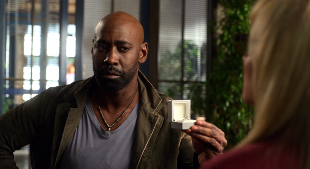 While Linda is waiting at an appointment, Amenadiel shows up and awkwardly proposes to her. But she says no. They have a heart to heart, and he holds her hand, comforting her as they wait.