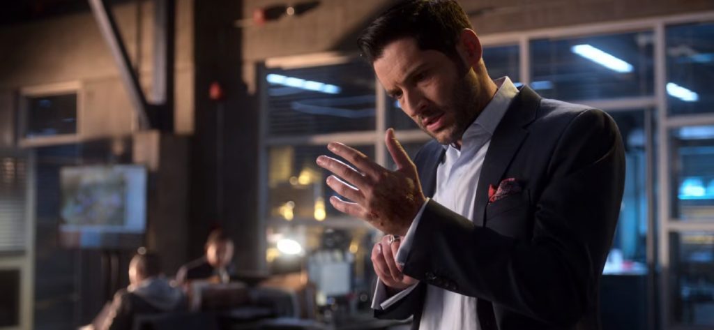 Chloe says, “You always talk about how much you hate being blamed for humanity’s sins. You know, ‘The Devil made me do it,’ and I think I know why you hate it so much. because deep down, you blame yourself just as much if not more!” She tells him he needs to forgive himself. Lucifer doesn’t know how, but he wants to. He begins to change back.