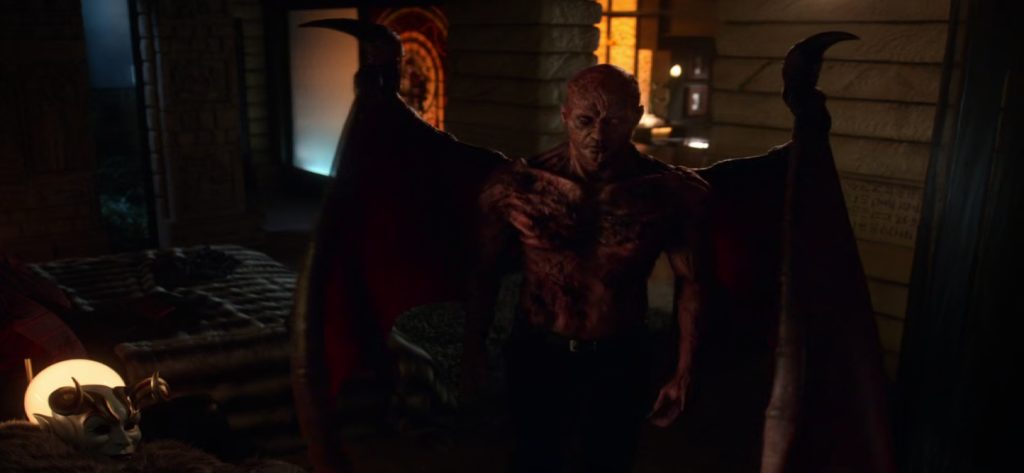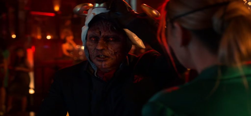 At Lux, Moira receives a call saying that Megan’s husband won’t come. Lucifer removes his mask and Chloe can see Lucifer’s full devil face.