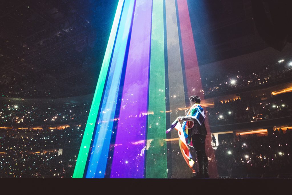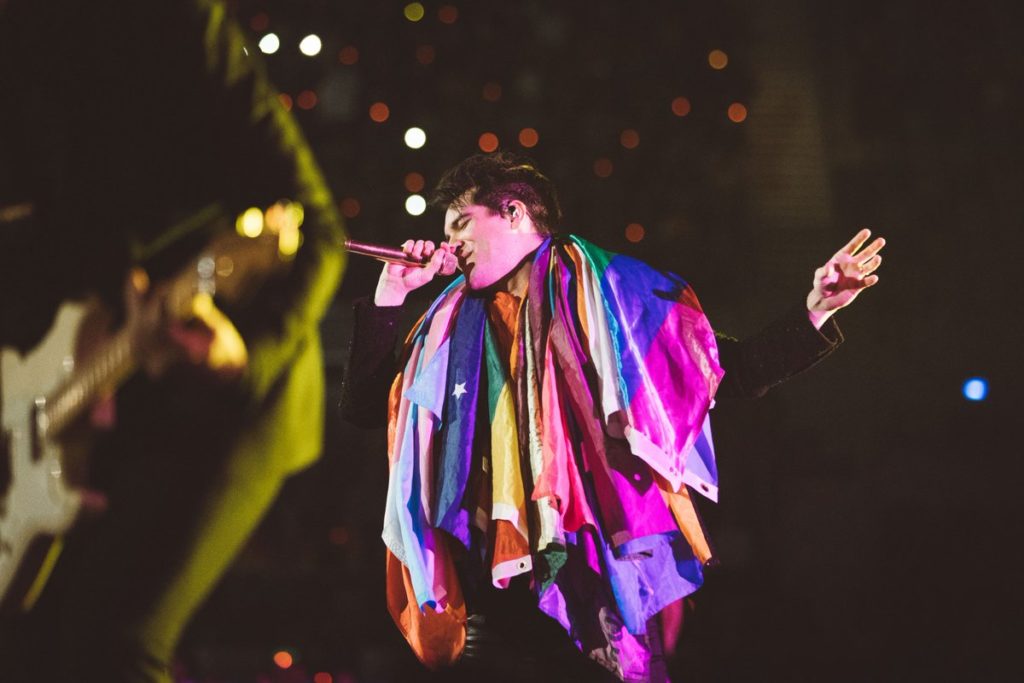 But before Urie even officially came out as pansexual, he had been a staunch ally to the LGBTQ+ community without even realizing it. Along with a stint on Broadway starring in Kinky Boots, which has many LGBTQ+ themes and celebrates drag culture, there are accounts and stories all over Instagram of how the singer has helped folks embrace their own sexuality. The song “Girls/Girls/Boys” — which is actually about Urie’s first threesome — has become sort of an anthem for fans who are in the LGBTQ+ community. At many concerts, fans hold up rainbow hearts and throw pride flags onto the stage, which Urie has taken to proudly draping around his neck while performing the song.