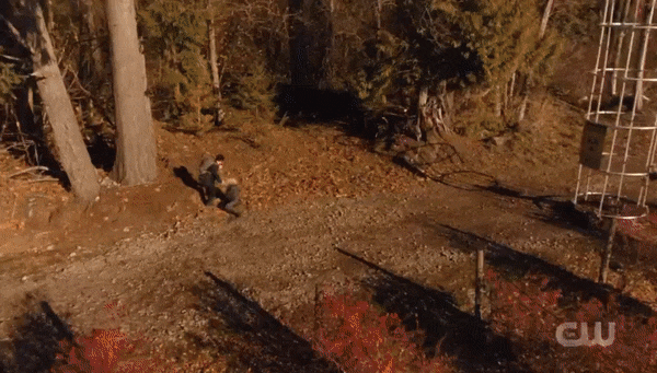 As motorcycles approach, Echo notices Clarksephine looks nervous. Then, in an effort to divert attention while she escapes, Clarksephine slices Murphy’s leg open. I’m not going to go looking up medical sites to find out specifics, but she hit a major artery y’all, because a fountain of blood is coming from his leg! But Bellamy takes Clarksephine away as Emori turns on the EMP allowing Clarke’s body past the barrier. He’s got her and he’s on his way to find Gabriel, as Murphy suggested.