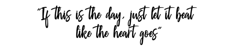 Jennifer (@macd1982): “I’m rather fond of, ‘If this is the day, just let it beat like the heart goes.'”