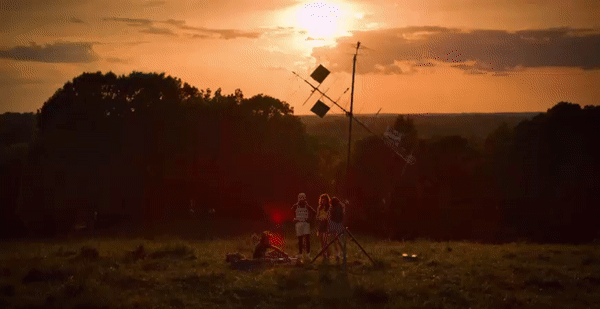 Back at Dustin’s house, Lucas has washed almost all of the hairspray out of his eyes. Meanwhile, Dustin is showing off his science camp inventions to the others. His prized possession is a powerful ham radio called Cerebro that’s strong enough to reach his girlfriend, Suzie, who lives in Utah. (Ah, so that’s who Suzie is!) He and the gang head out into a large field so he can install the signal tower and talk to Suzie. But Mike and El bow out at the last minute because of El’s curfew (um, it’s 4 p.m., guys), even though it’s clear that they just want to be left alone to make out to more sappy Corey Hart music. “Romantic,” “gross,” and “bullsh*t” are some of the words the others use to describe Mike and El’s relationship.