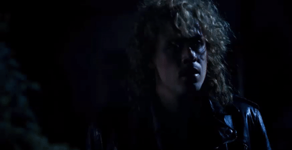 But it’s just El working her magic, who is hiding next to the others quietly, all waiting to surprise Dustin and welcome him home. And when they do jump out and yell “Surprise!” it’s Lucas who gets smacked in the face with the full contents of the Farrah Fawcett hairspray can. Man, Lucas sure can scream like the dickens….