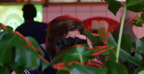 Over on the mall rooftop, Steve, Dustin and Robin wait for evil Russians – who show up on time with mysterious boxes. They put the boxes inside a room with even more mysterious boxes. Steve and Dustin squabble over the binoculars, then promptly drop them. They make a loud noise. The evil Russians are quick to investigate. The three duck down, fearing for their lives. Robin and Steve are so afraid that they turn to each other for comfort. When they realize they’re holding hands, they both quickly drop them. Luckily they manage to escape before the evil Russians spot them.