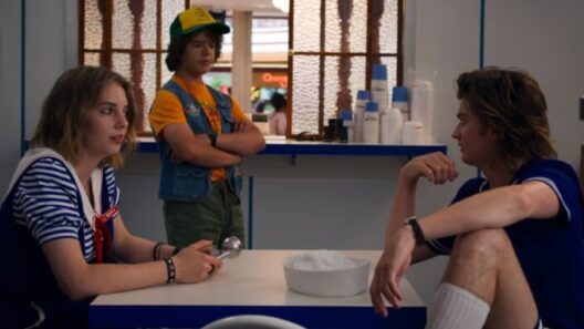 *Ding, ding, ding* Everyone’s favorite, feisty, little sister, Erica Sinclair, is ringing the bell at Scoops Ahoy. She’d like to try the peanut butter chocolate swirl sample. Please. Robin denies her ice cream. Unfazed, Erica asks for Steve. But no can do. Steve is busy doing spy craft.