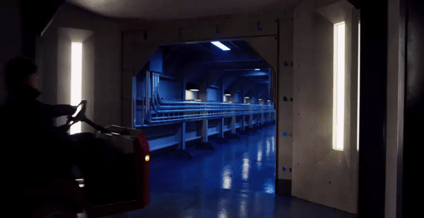 When Robin hears an approaching vehicle outside of the elevator, the timing really couldn’t be better; after all, we know that if she needed to deal with Steve relieving himself over the side of the elevator shaft much longer, she would be likely to end his life. Two Russians open the door to remove some boxes while they lie in wait. As the door begins to close, Steve slides the container of ooze to prop it open so they can all slide Indiana Jones-style out of the elevator. The canister holds just long enough before shattering, and the green liquid instantly proves to be corrosive and eats through the floor.