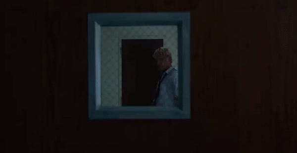Nancy and Jonathan, despite having a lovely muzak-accompanied elevator ride to make up, do not have the same time to bask in the glow of their reconciliation. They arrive in Mrs. Driscoll’s room to find the woman missing and are met instead with the menacing presence of a flayed Tom Holloway. Jonathan strikes Tom in the head with a nearby vase, allowing them to escape the hospital room. Their safety is extremely short-lived, and they are stopped by another flayed, this time the journalist Bruce from the Hawkins Post, who is showing the exact same injury that was just dealt out to Tom. What follows is a chase right out of a slasher film with Nancy and Jonathan unable to get in contact with the hospital receptionist due to her tying up the phone line with a personal call. We even get a shot of Bruce that is right out of The Shining as he breaks through the door to attack the two teens. The flayed seem to be incredibly difficult to take down, as Bruce is hardly affected by Nancy spiking him in the back with a rather large pair of scissors.