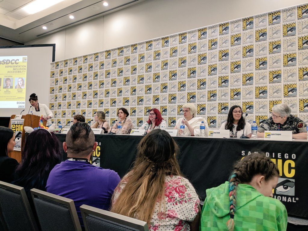 Last night at San Diego Comic-Con, we were able to attend the DisSDCC panel, a panel about disability representation, inclusion and accessibility. Panelists included featured guests Rachel Miner (Supernatural, D&D Live), Shoshannah Stern (This Close, Supernatural), and Nic Novicki (Easterseals Disability Film Challenge). Other panelists included: Cindy Kapp, Kai Winchester, Emy Cook, and Lynn Gagne. It was moderated by Tanya Cook (Always Keep Nerd Fighting). Every panelist is disabled and is passionate about being self/community advocates.
