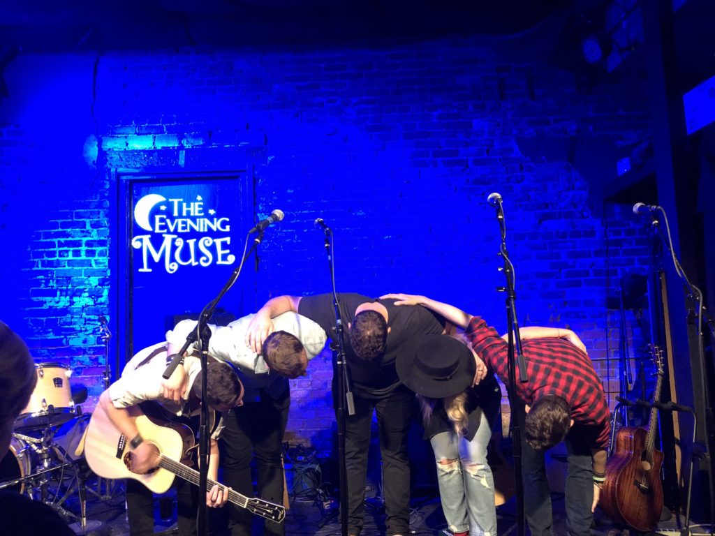 All five musicians came out for the final performances of the night. First up was “Come Together” in what ended up being the most entertaining song of the whole night as everything fell into chaos. With almost everyone needing to read the words to the song, and needing to move to see the lyrics, those on stage kept bumping and running into each other and the mic stands. Paul attempted to join Billy on guitar before deciding that what the song really needed was some drums, taking a seat at the drum stand and pounding out a beat. Hayden accompanied Paul with some beat-boxing as Briana took Paul’s guitar off his hands and moved to power squat back to back with Billy. Meanwhile, Jason watched everything unfold around him with glee on his face as a proud Master of Chaos. Things calmed down for the last song of the night, and the group sang out a very enjoyable “Wagon Wheel” before taking a well-earned bow.