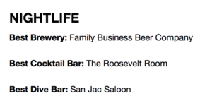 Both are popular destinations for Austin visitors and we are excited to see them getting the recognition they deserve. Congratulations to FBBC and San Jac Saloon!