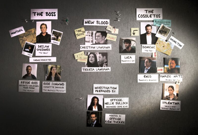 Looking to take everyone down is the organized crime division of the RCMP. The division is headed up by Nellie (Lisa Berry) who has insider information from Nats Cosoletoās (Dylan Taylor) wife Val (Melanie Scrofano). Unfortunately, Nats dies in prison, and Val is killed by Domenic Cosoleto (Louis Ferreira) for being a rat. Forced by Declan, Enzo (Daniel Kash) walks into the police station and talks to Nellie about what the Langana twins are up to.