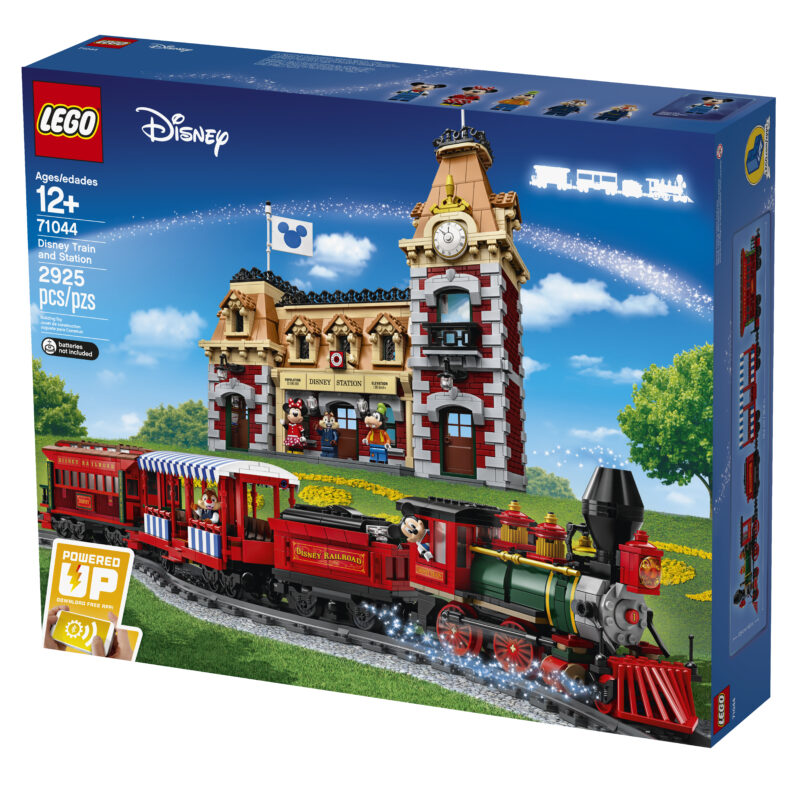 LEGO is releasing a new 2,925 piece brick-set, the LEGO® | Disney 71044 Train and Station, featuring five of your favorite Disney characters, a motorized steam-style locomotive, passenger car and a luxurious parlor car, along with an oval track and the iconic Disney Parks®-style train station.