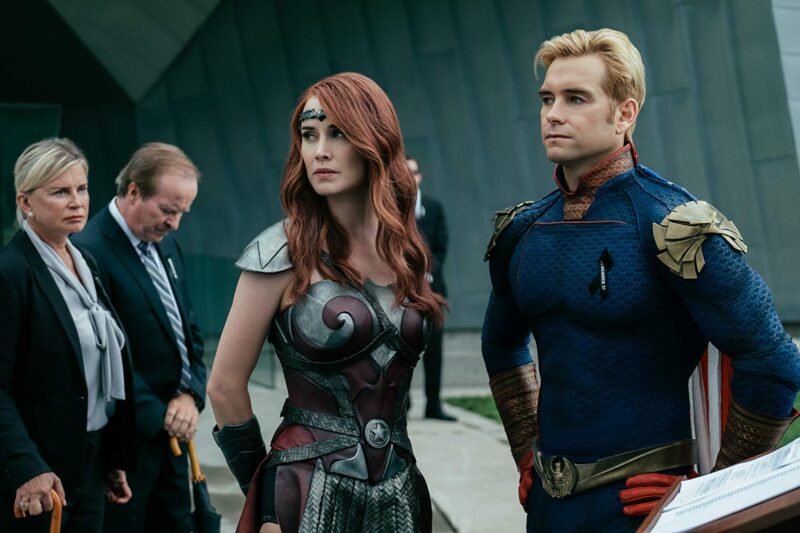 This is disappointing, because overall the series does a good job of finding the nuance while maintaining a thrilling, and sometimes shocking, “in your face” feel. It is a show that pulls no punches (literally and metaphorically). It manages to find humor and hope amongst the dark depravities of human nature as it exists in our late-capitalist society without flinching. In fact, it stares directly into that black abyss and laughs at it. Because there is humor to be found as we explore our trauma and attempt to fight back against the powers that be. There is something fun about wading into, and reveling in, the grotesqueries of what humans are capable of when they have too much power and when they have none. But, as I said before, it’s a fine line to walk — that line between exploration and exploitation — and The Boys almost makes it. Until it trips at the finish line.