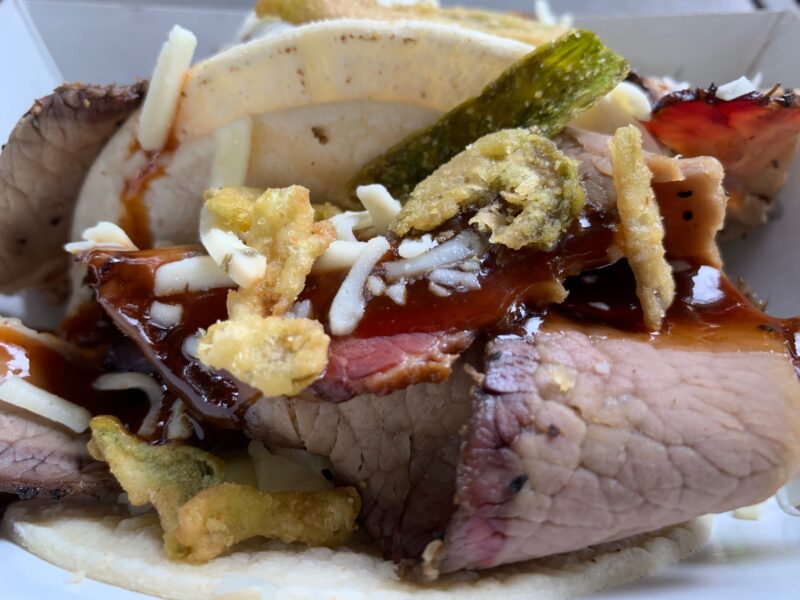 We moved on next to Tacos on Tap, where we grabbed the Shrimp Tacos and the Smoked Brisket Tacos. The Shrimp Tacos featured beer-battered shrimp, shredded cabbage, queso fresco, and sweet ginger pickled onions on a flour tortilla. The Smoked Brisket Tacos were comprised of smoked brisket, citrus chipotle bbq sauce, shredded pepper jack cheese, and crispy jalapeno strips on a corn tortilla. Both tacos were great and had a great flavor. It’s definitely something you should check out.