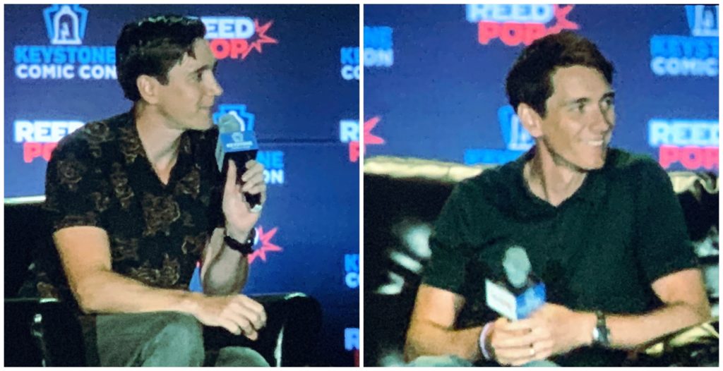 Attendees also got to hear stories from behind-the-scenes and how they got their roles. For Bonnie, she really looked up to her brother and they were fans of the book series. So, when her brother said she should try out for Ginny, she did just that. The twins went to open auditions and were the only set of twins not dressed alike. Con-goers also got the story of how Oliver went out with set makeup still on. In this case, a mangled ear. He said that absolutely no one was standing around him on the tube.