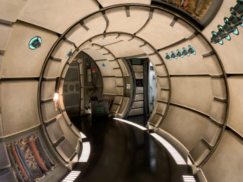 When you leave the cockpit, the corridors will vary based on how well your crew did as well. If you came back with lots of damage, the corridors will have flashing lights and transmissions of people talking about the damage. The exit leads you right next to the entrance of the ride, so if you want to ride it again immediately, you don’t have to go far!