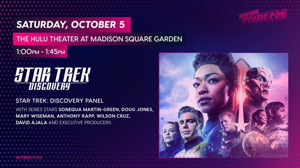 Saturday, October 5 will consist of back-to-back Star Trek panels at the Hulu Theater at Madison Square Garden. From 1 p.m.-1:45 p.m., the series stars and executive producers of Star Trek: Discovery will take the stage and from 1:45 p.m.-2:30 p.m., there will be a panel with the stars and executive producers of Star Trek: Picard.