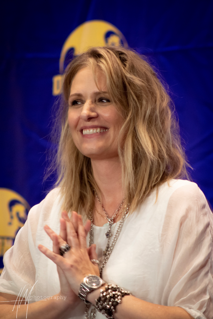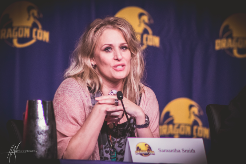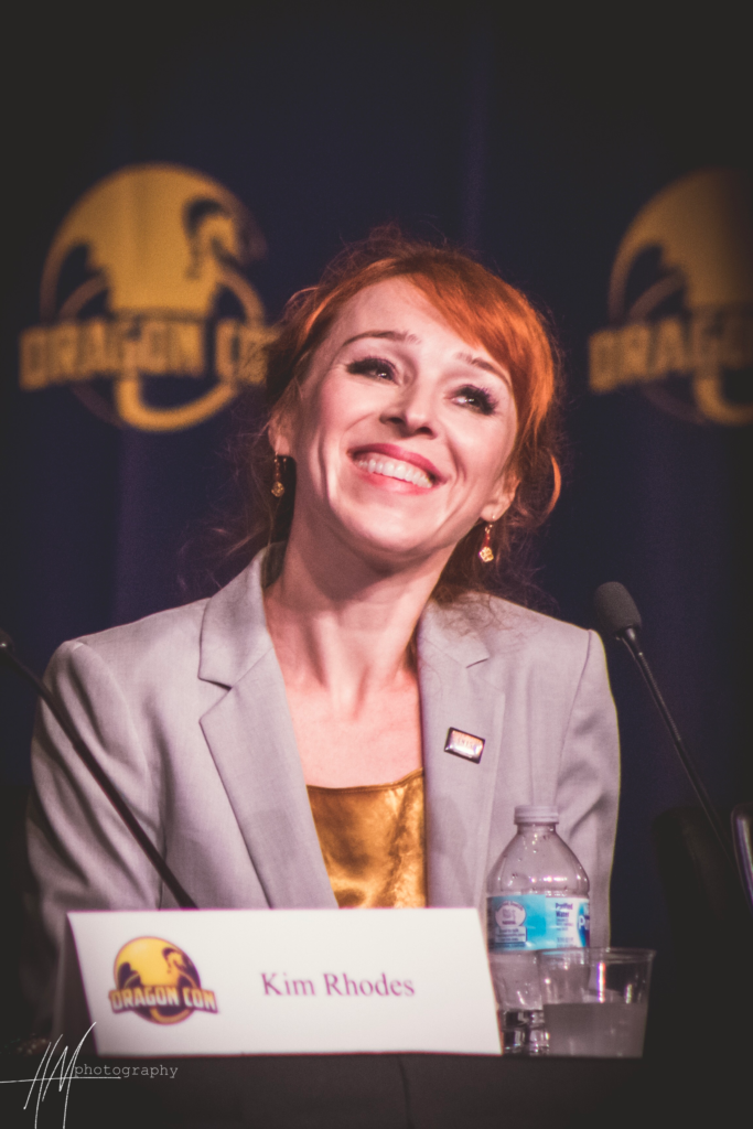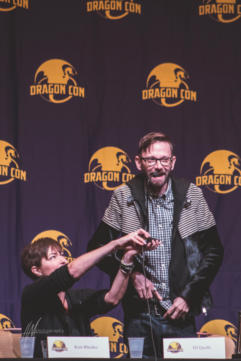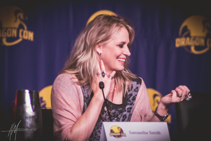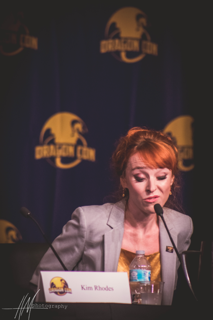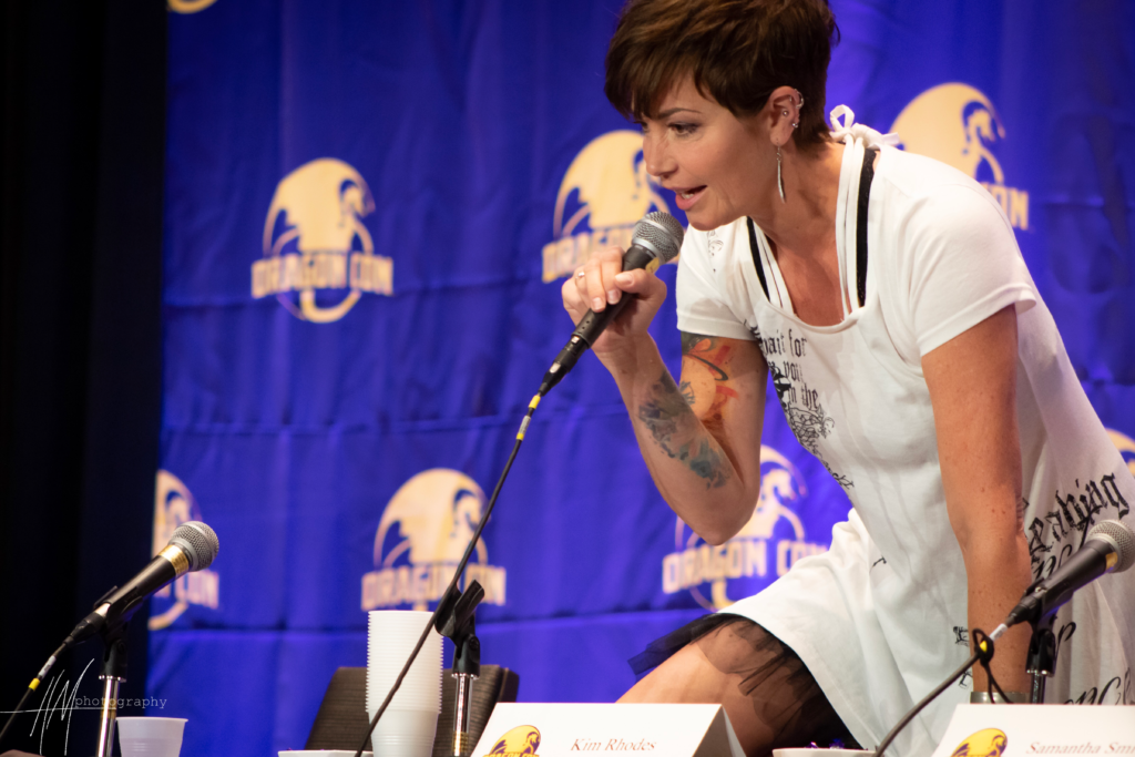 A little while later Kim Rhodes and Samantha Smith took the stage for what I’ve dubbed the “Supernatural Mom Panel.” This was the first time Kim or Sam had attended DragonCon and both found the format to be different than they were used to. Kim even tried to climb over the table, declaring that we, the audience, were too far away.