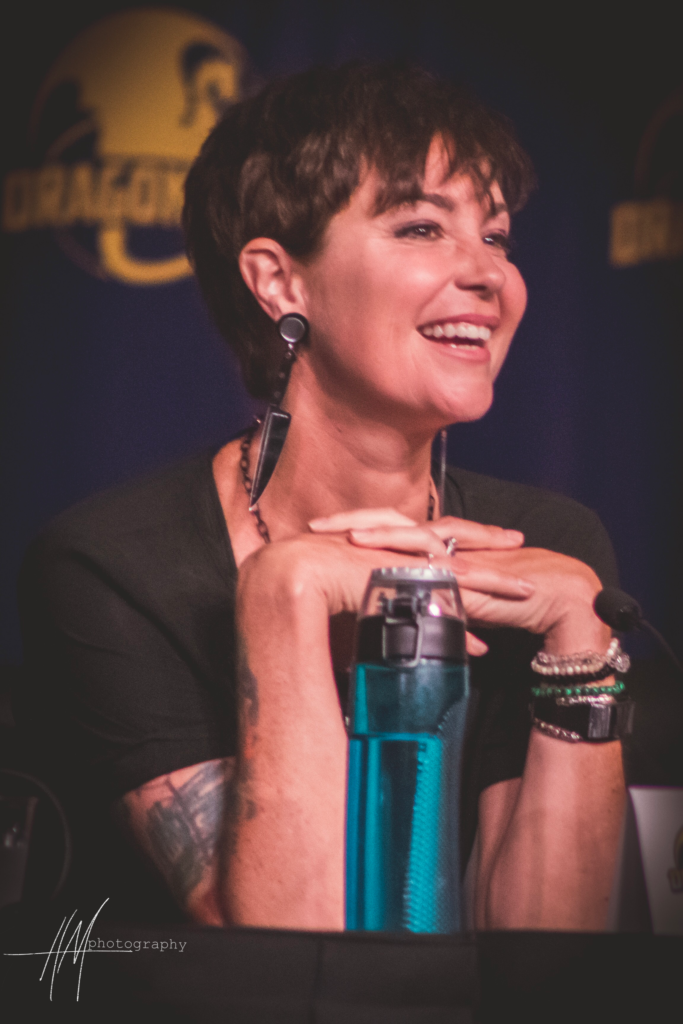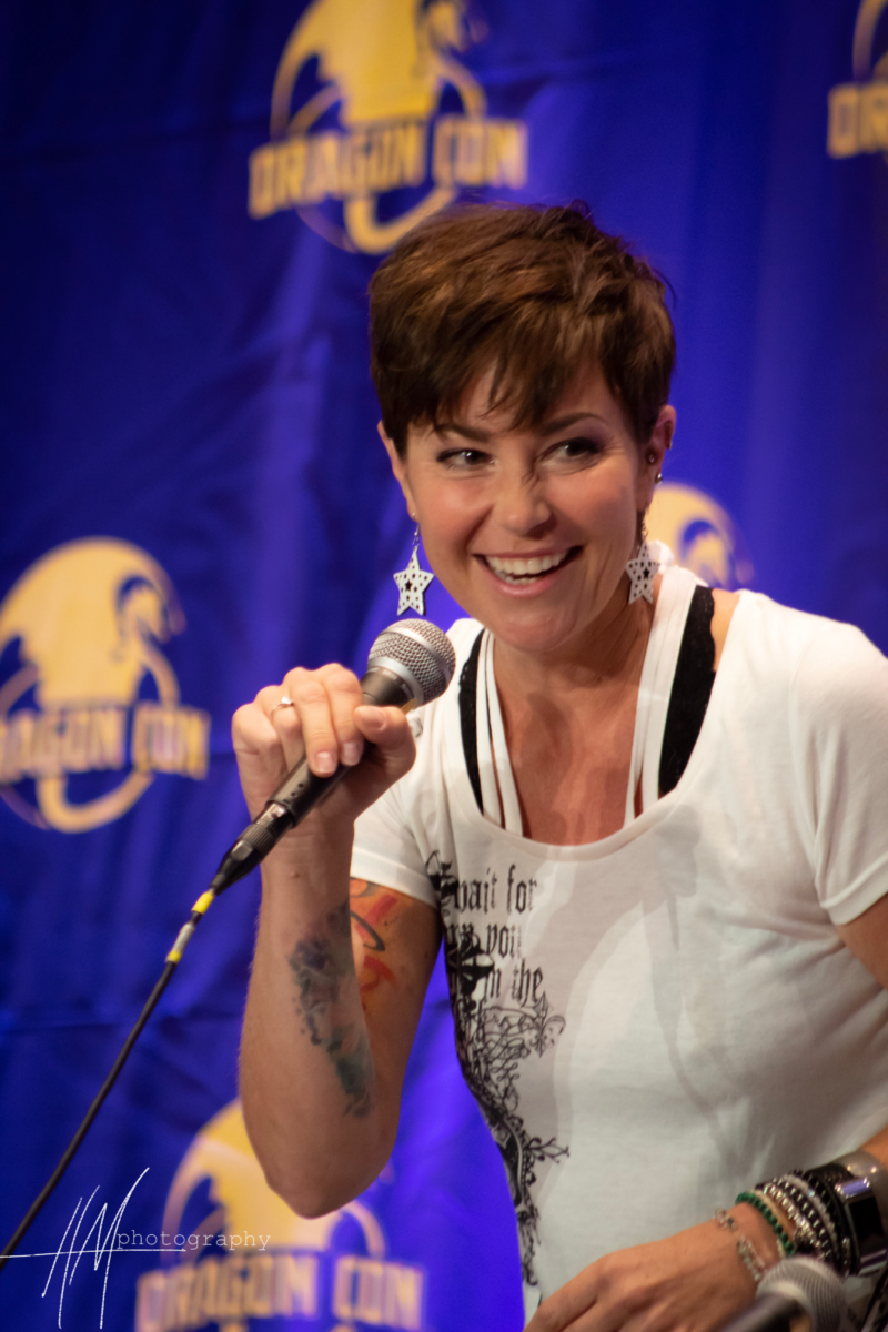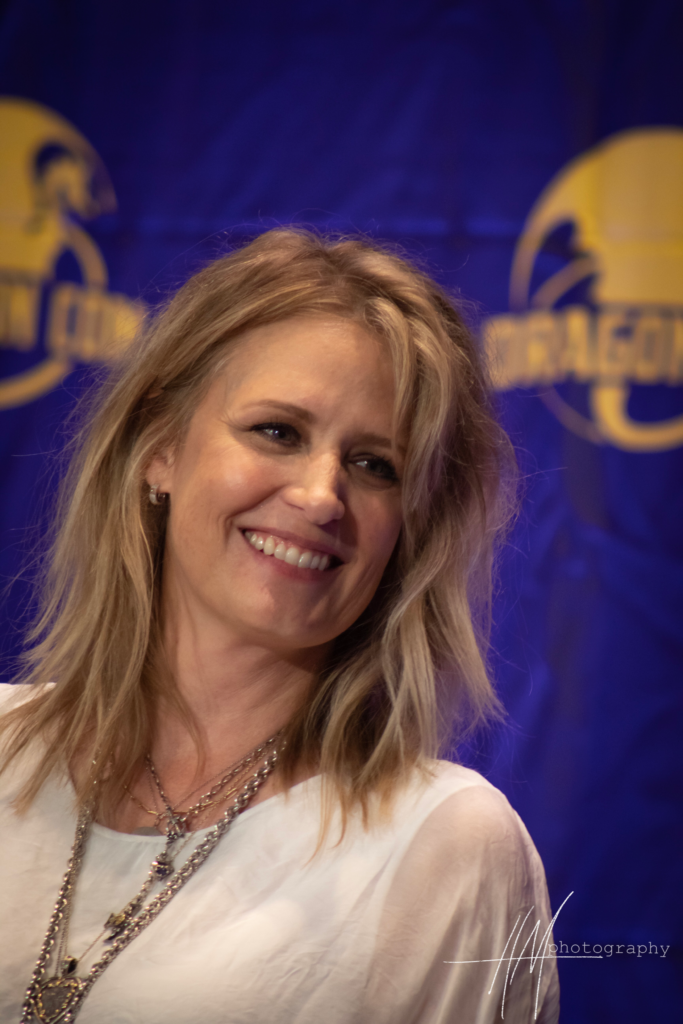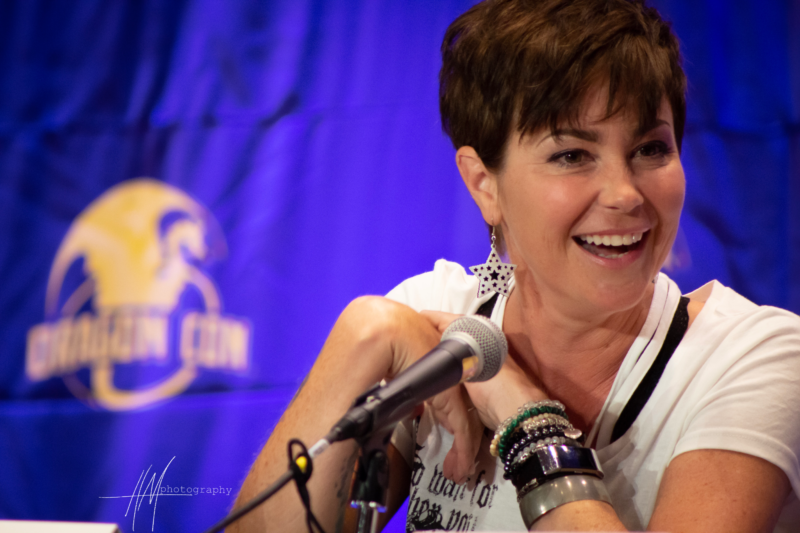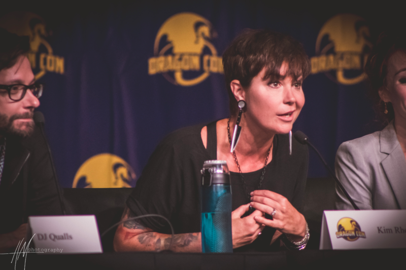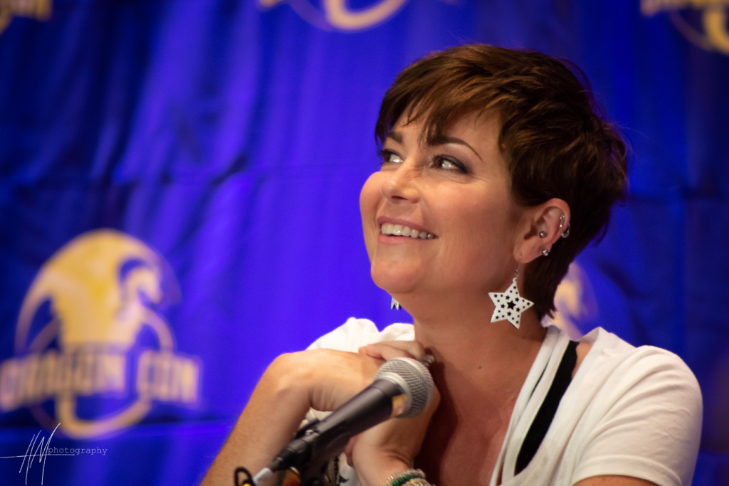 A little while later Kim Rhodes and Samantha Smith took the stage for what I’ve dubbed the “Supernatural Mom Panel.” This was the first time Kim or Sam had attended DragonCon and both found the format to be different than they were used to. Kim even tried to climb over the table, declaring that we, the audience, were too far away.