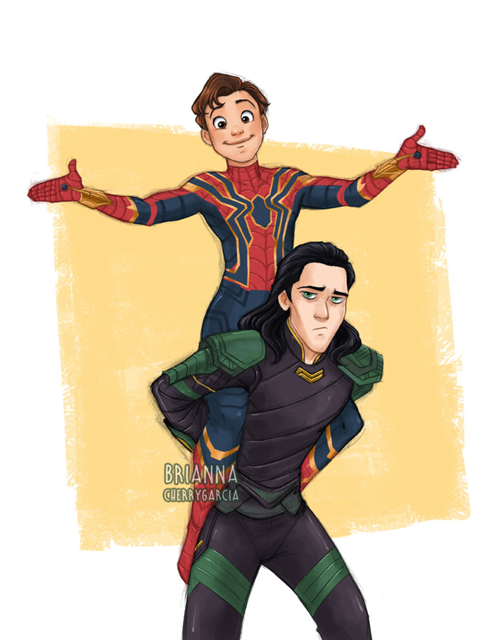 I first met Brianna at ACE Comic Con in Chicago last year, where I zeroed in on one of my favorite pieces of fan art ever: her little sketch based on a photo of Tom Holland and Tom Hiddleston, which she turned into a cute sketch of their respective Marvel characters: Spider-Man and Loki.Â