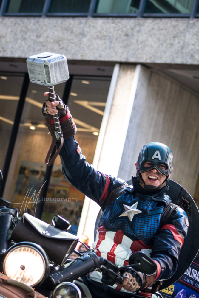 Cosplays featured in the parade included characters from Supernatural with a replica of the 1967 Chevy Impala, Disney characters, Stormtroopers, Harry Potter, Game of Thrones, Men In Black, Pirates, Netherworld (a popular local haunted house known for its elaborate makeup and special effects), Resident Evil, and Marvel superheroes — including the Colorado Captain, famous for his Captain America cosplay and charity work.