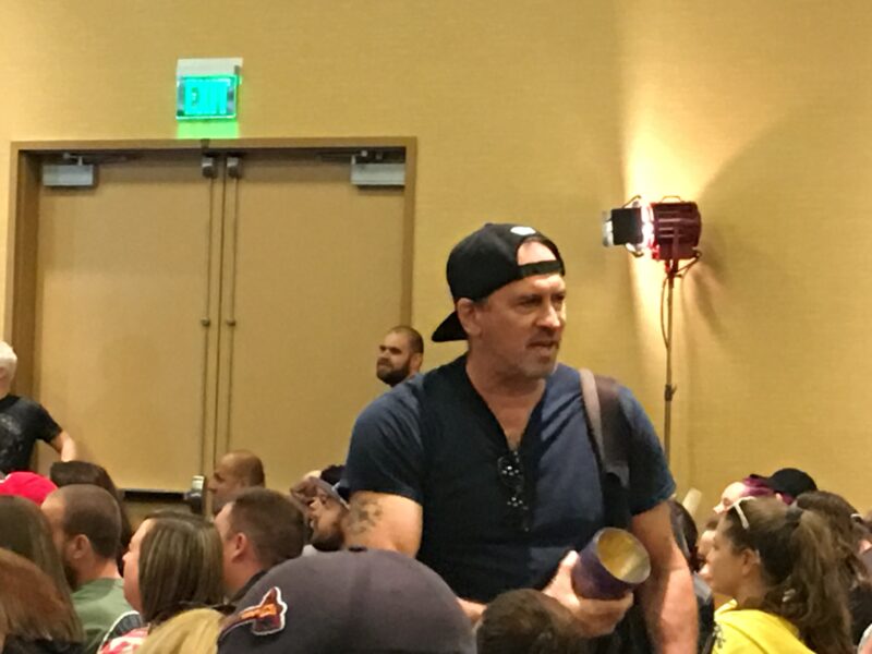 The Saw cast included Tobin Bell (Jigsaw), Shawnee Smith (Amanda Young), Scott Patterson (Agent Peter Strahm), Sean Patrick Flanery (Bobby Dagen), and Dina Meyer (Detective Allison Kerry). We knew this panel would be a fun experience before it even started. Sean Patrick Flanery arrived early to warm up the crowd — which mostly included jokes and lots of cussing. Scott Patterson came early too, walking through the crowd and sharing his snacks with fans.