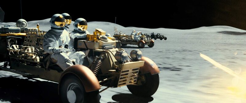 We hear about the more fascist aspects of Space Command, and the war on the Moon, but we don’t get to actually see it (apart from the Mad Max style Rover battle). And because we don’t know enough about the world, we don’t get to know enough about McBride. Even the side characters are only in the film long enough to help McBride with one thing and then they are gone. Liv Tyler plays McBride’s mostly silent wife via flashbacks. The incredible Donald Sutherland and Ruth Negga serve their brief purposes and then are dispensed with. In one particularly shocking scene, you learn there are rabid space chimps that have killed an ENTIRE crew, but you only meet them long enough for them to kill the captain that accompanied McBride, then they’re gone and done. No explanation as to why they’re there, or if they are like that because they were affected by the EMP waves. Nothing. There is zero attempt at backstory for any of the characters you meet, even with McBride you only get brief flashbacks to his wife or his dad leaving, but again those are all mostly silent. As a result, it feels like we only got two thirds of a story. There are just too many loose ends and not enough rules established. (Like, how do those guns during the Mad Max Moon scene even work in zero to no gravity?)