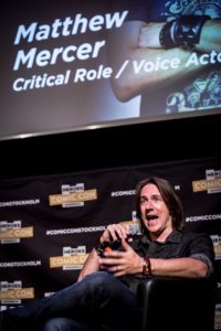 On the topic of inclusivity, Mercer said that he was raised in an environment that was very open, loving and inclusive, and he always just assumed that was how the world worked. Then he grew up and realized that wasn’t how the world was, but that marginalized people go through so many trials. He found that to be very frustrating. Exandria, a world in Critical Role, is almost a reflection of the world that he would like to see. He also said that there’s always room to grow, and that he learns new things day in and day out about how to be better and be more inclusive himself. It can also strange to try and represent perspectives that aren’t necessarily his own, because then you open yourself up to the risk of telling a tale without having full understanding. Then, you listen to the people that do, and take their input and learn from them. Mercer said he thinks it is a wonderful thing to be able to learn from so many people, and have that reflect on the story they’re telling, as well as promoting community, safety, and a place where everybody is welcome.
