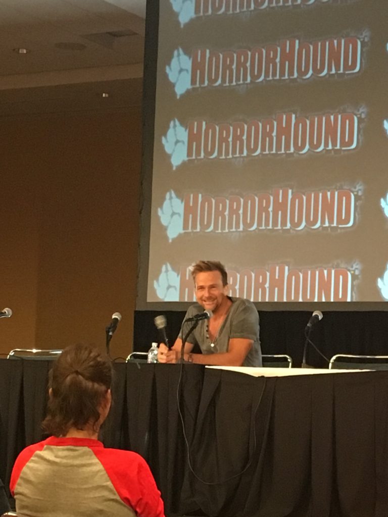 Turns out Sean Patrick Flanery is both hilarious and wise! He appeared Saturday with several cast members from the Saw franchise, but on Sunday had a solo panel where he answered fan’s questions about his decades long career. He’s also well-known as the lead role in the 1995 movie Powder and the role of Conner McManus in the movies Boondock Saints and Boondock Saints II: All Saints Day.