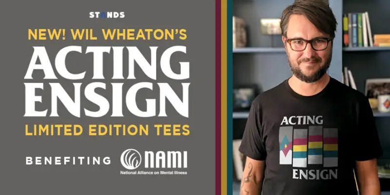 Trekkies will recognize the T-shirt’s design as a call back to Wheaton’s character, Wesley Crusher, in season one of Star Trek: The Next Generation. The new shirt and the rest of the Wil Wheaton collection are available now at Stands!