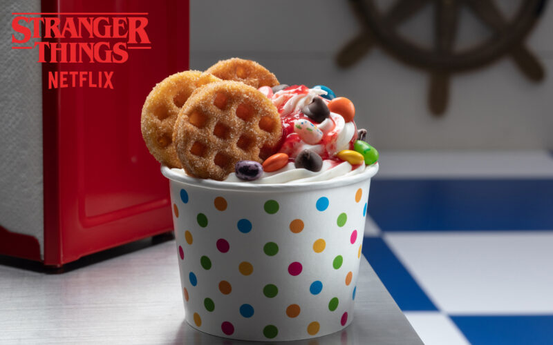 Fans of Stranger Things season three have various choices for delicious and chilling treats. Enjoy Eleven’s Waffle Sundae, Benny’s Burger, and The Upside Down Burger. Drink a Mind Flayer’s Milkshake that is a filled chocolate treat topped with strawberry sauce, chocolate whipped cream, crushed Oreo, a black waffle cone, and black licorice tentacles. Have a spicy snack that is a twist on nachos called Demogorgon’s Totcho. It’s piled-up tater Tots, doused in spicy queso, chili, Flamin’ Hot Cheetos, sour cream, and scallions.