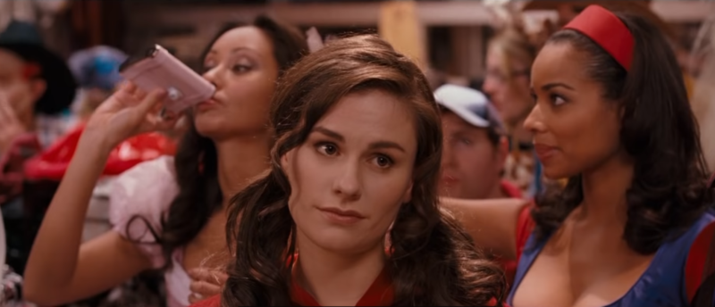 Regardless, she takes herself and her jack-o’-lantern home (also the best one in the movie), though not before dusting off her hat and sharing a look with Sam. Always wear your costume, indeed…